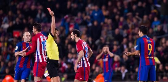 他在2016-17赛季国王杯半决赛次回合围攻马德里竞技(1-1)的比赛中因两黄变一红被罚下,